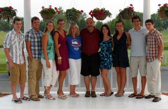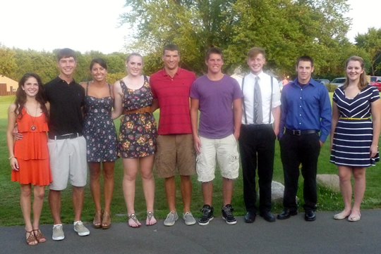 Posing for a photo with Mike & Kim Brown are 2014 scholarship winners (L-R) Katherina Cacovski, Hannah Maxwell, Kara Breuckman, Rory Packard and Alex Kutemeier. (Not pictured, Anna Marie Gianni.)